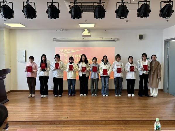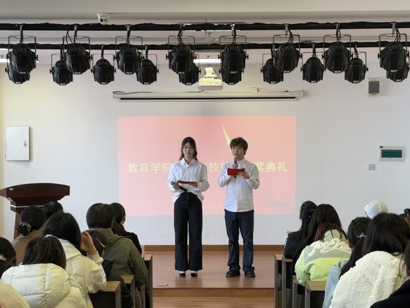 在颁奖环节,与会领导分别为在各赛项中荣获一等奖、二等奖、三等奖及优秀奖的学生颁发证书。获奖学生依次上台领奖,精神饱满、仪态端正,展现出教育学院学子良好的专业风貌与自信风采。